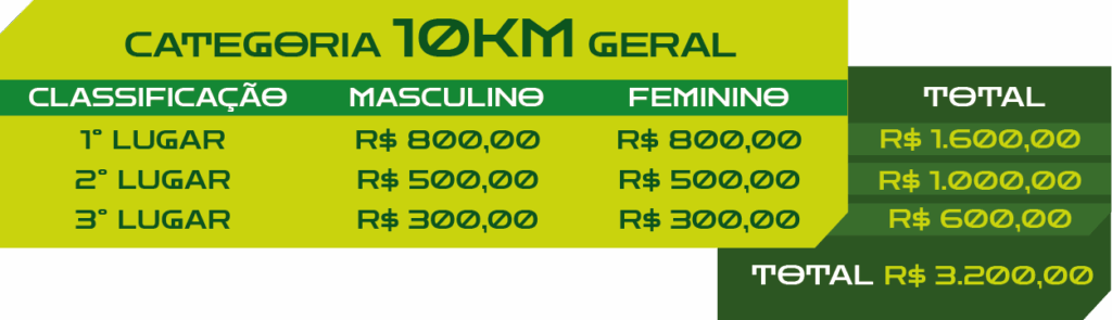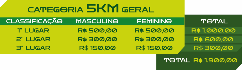 Não, não haverá premiação por faixa etária. A premiação é apenas por classificação geral.